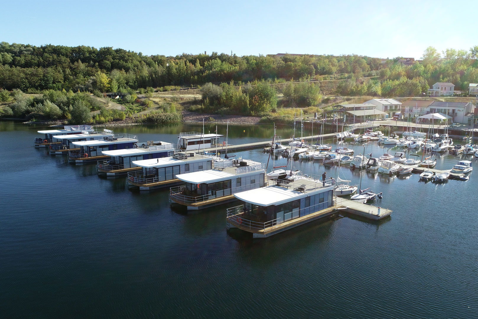 Schwimmende Ferienhäuser im Weserbergland